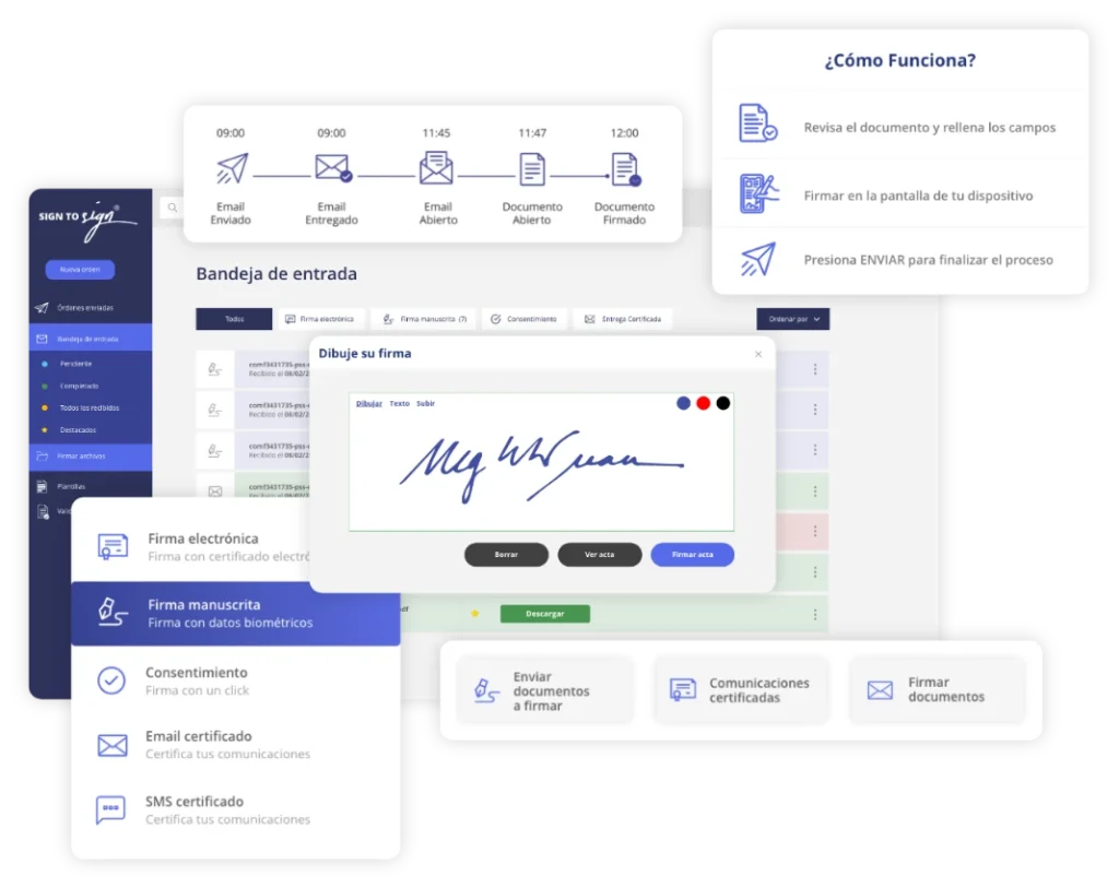 Firma electrónica de contratos, entrega certificada y validación de documentos.