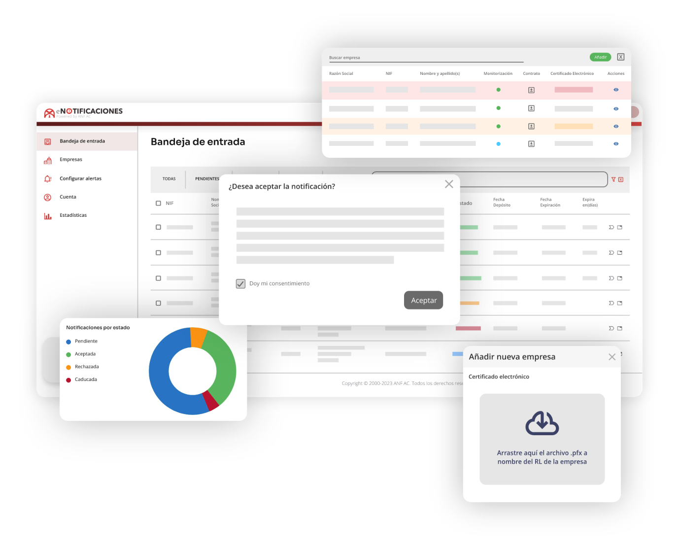 Desde un mismo punto de acceso, sincroniza los buzones que emiten Notificaciones Electrónicas y gestiona de forma sencilla los certificados de seguridad digitales de varios NIF.