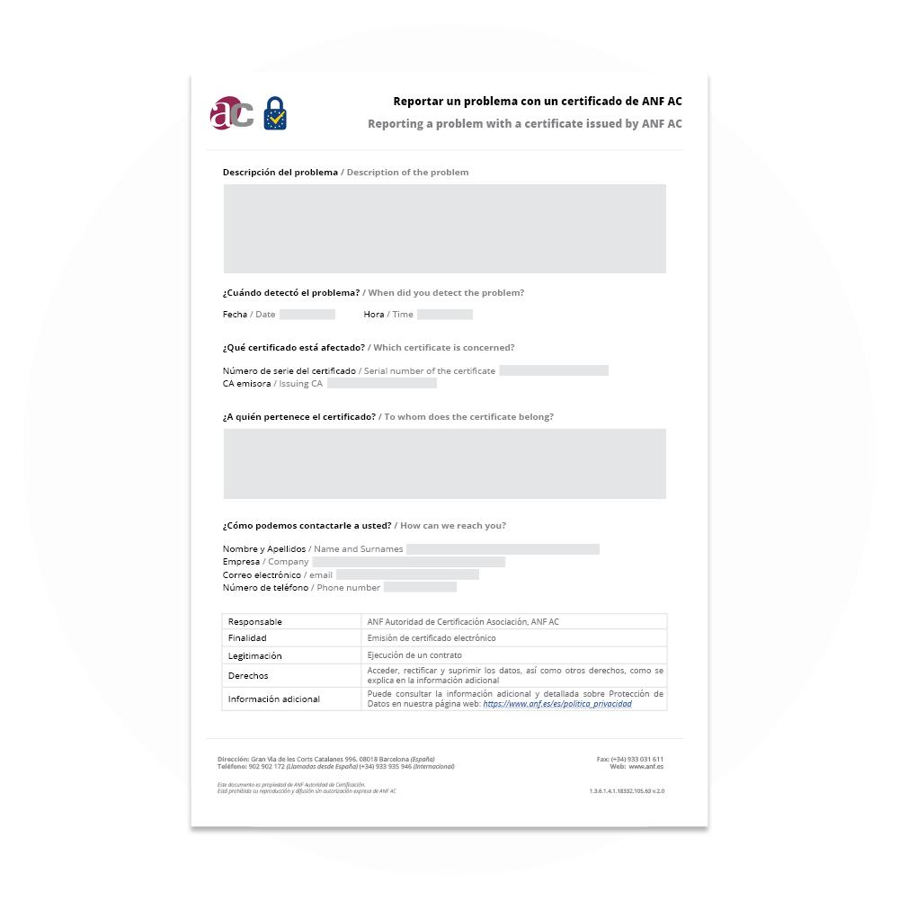 ¿Ha detectado un problema de incumplimiento de un certificado emitido por ANF Autoridad de Certificación? ¿Sospecha de uso indebido de certificados emitidos por ANF Autoridad de Certificación? O bien: